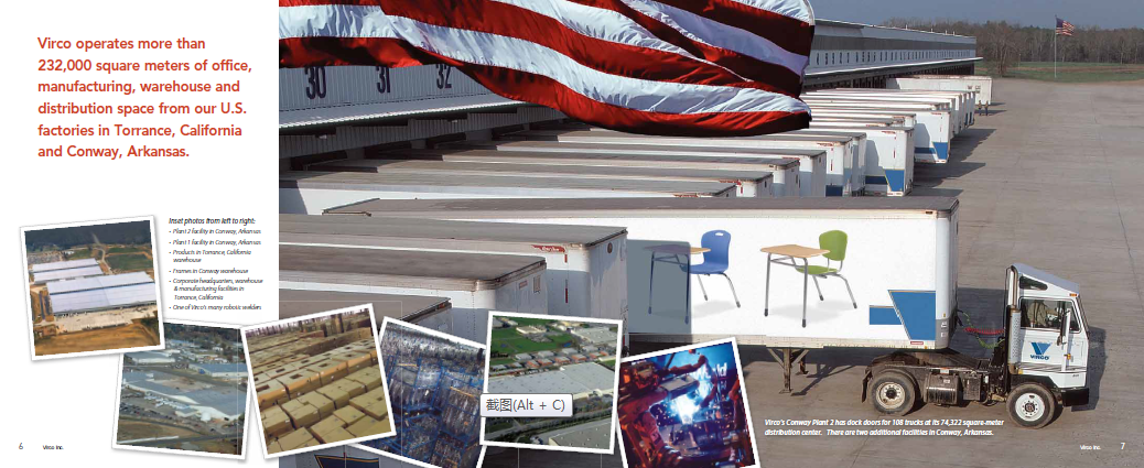 virco作为美国领先的K-12学校家具和设备的制造商和供应商,在全国大约有700名员工。我们位于加州托兰斯的总部占地56万平方英尺,拥有先进的制造设备,阿肯色州康威的总部也拥有大约175万平方英尺的运营空间。托兰斯和康威的大型配送中心促进了Virco产品的快速、高效运输。
